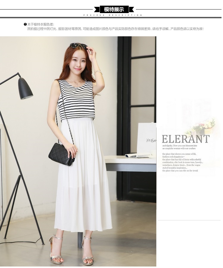ชุดเดรสแฟชั่น แขนกุดผ้าชีฟอง ครอปเสื้อลายริ้วขาวดำแขนกุดชั้นนอก ซับในซาตินสั้น งานเนี๊ยบแบบสวย ดีไซน์เก๋ สามารถใส่ได้ทั้งสองหน้า(ตามแบบ) ใส่ออกงานได้สวยๆ เลยจ้า