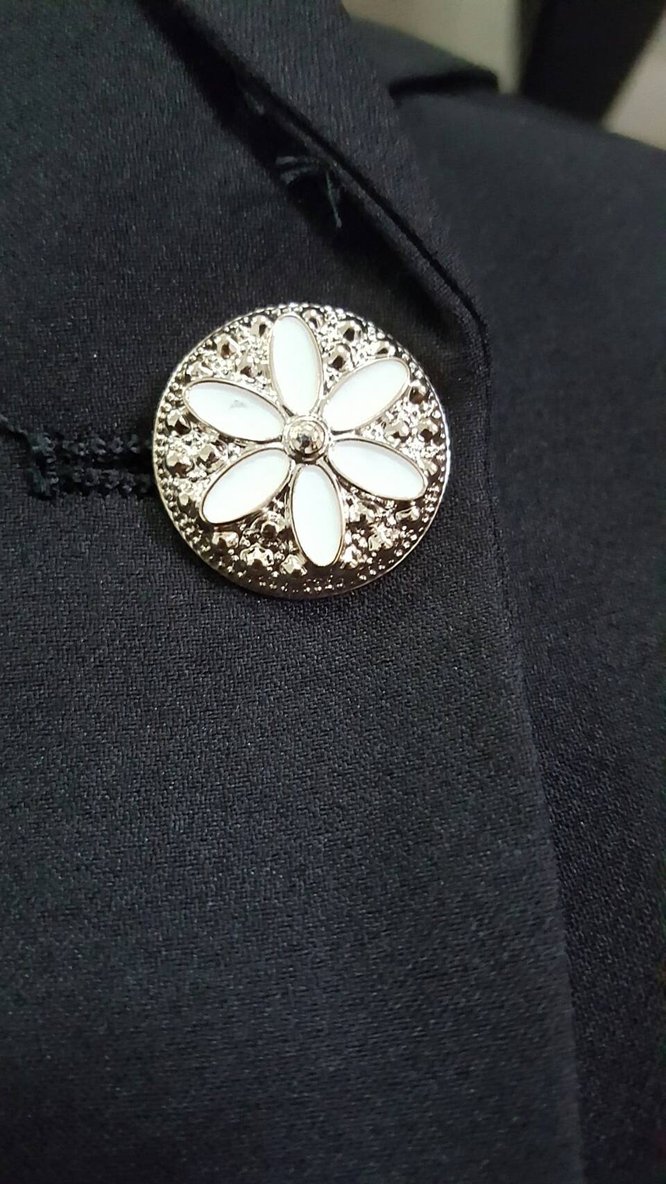 เสื้อคลุม เสื้อสุทใส่ทำงาน สไตล์เรียบหรู เนื้อผ้าหนากำลังดี เย็บซับผ้าไนล่อนด้านในเสื้อ กระดุมกลมเหลือบทองลายดอกไม้6กลีบ กระเป๋าหลอก ชายระบายผ้าชีฟอง
