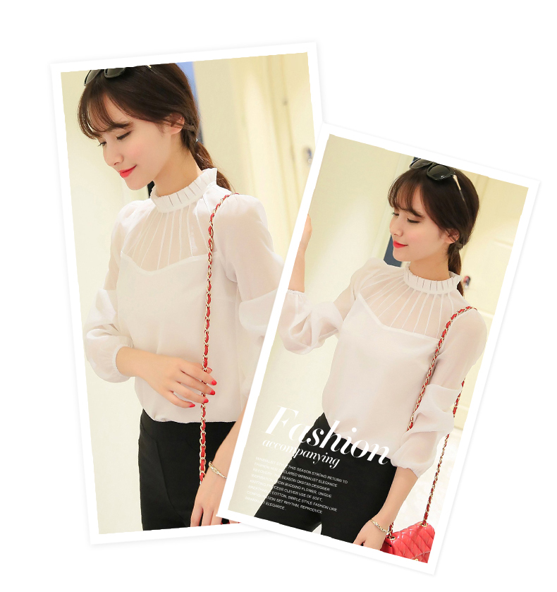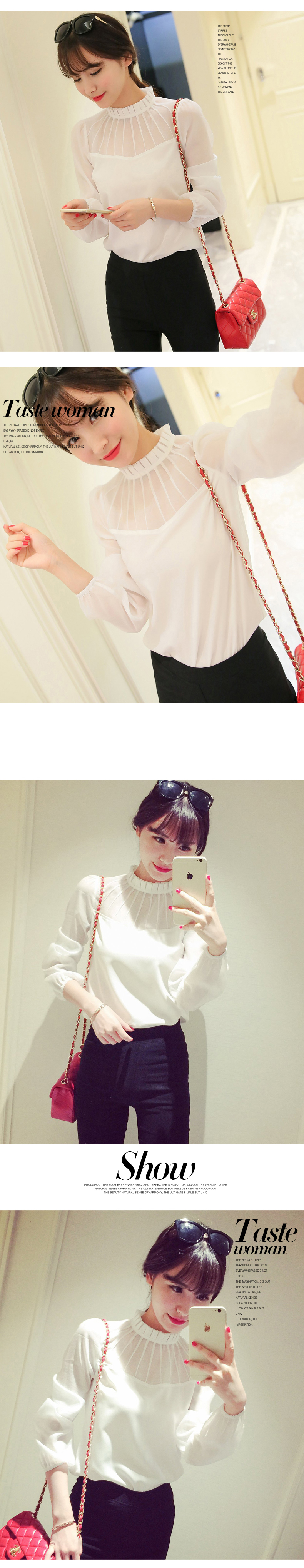 เสื้อแฟชั่นคอพับจีบ แขนยาวซีทรู ใส่สบายปลายแขนยางยืด