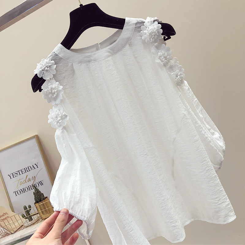 เสื้อแฟชั่นคอกลมเว้าโชว์หัวไหล่แต่งผ้าลูกไม้ ทรงสวมติดกระดุมหลังคอเสื้อ 1เม็ด เสื้อแฟชั่นใส่เที่ยว หรือลำลองแมทคู่กางเกงขาสั้น ขายาว ก็ สวยหวานน่ารัก