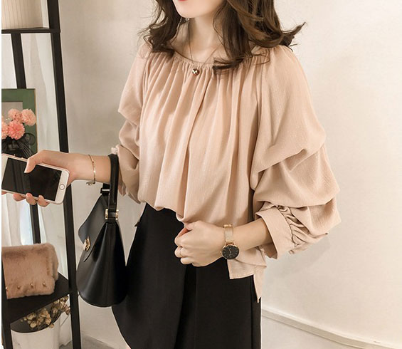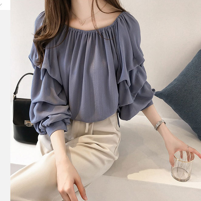 เสื้อแฟชั่นแต่งแขนจับจีบเป็นชั้นคอกว้างยืดโชว์หัวไหล่ก็สวยเซ็กซี่