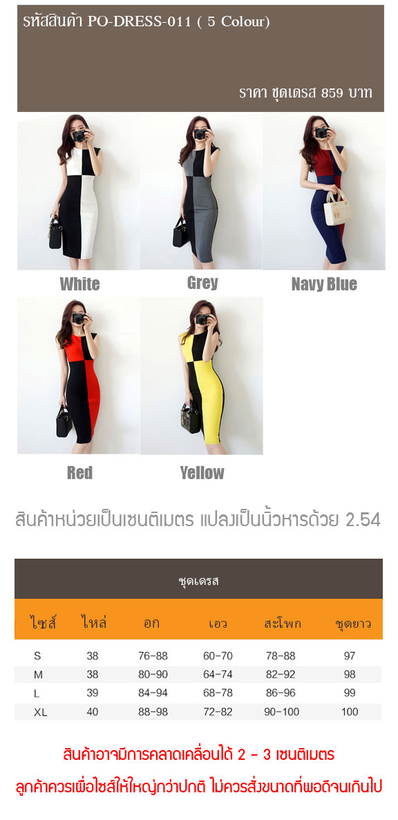 สินค้าพรีออเดอร์ ชุดเดรสแฟชั่นสสไตล์เรียบหรู 5สี 4ไซส รหัส PO-Dress-011