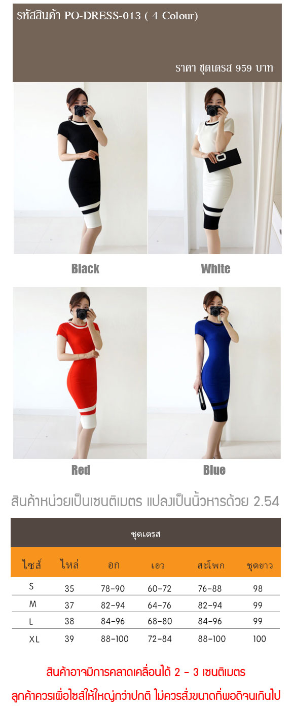 สินค้าพรีออเดอร์ ชุดเดรสแฟชั่น2สีสไตล์เรียบหรู 4สี 4ไซส รหัส PO-Dress-013