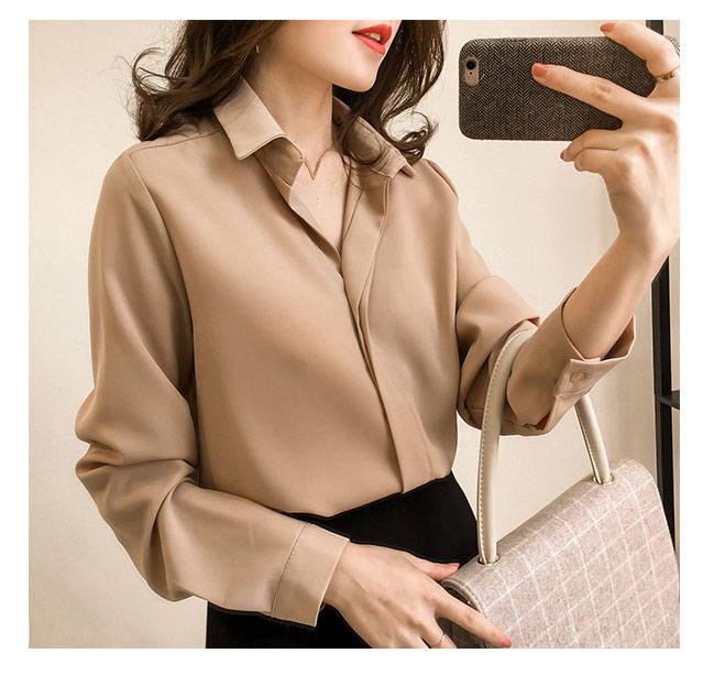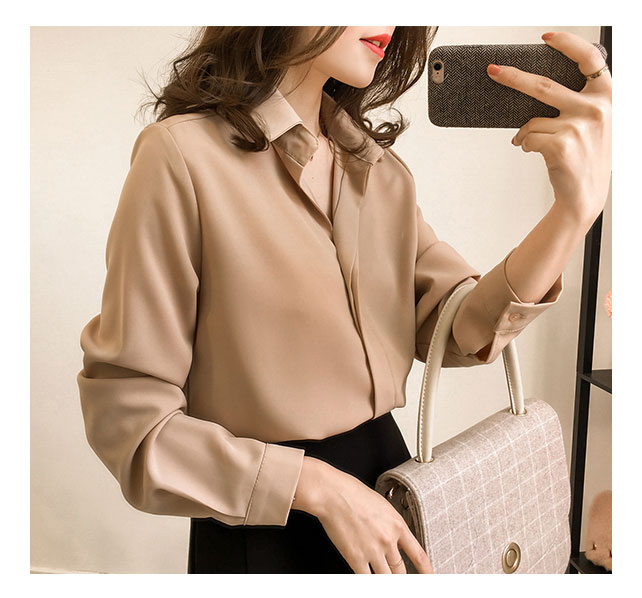 เสื้อเชิ๊ตแฟชั่นคอปก เสื้อแฟชั่นทำงานใส่สบายๆ แต่งสาปหน้าปลายแขนติดกระดุม 1 เม็ด ใส่คู่กางเกงขายาว,กระโปรง หรือขาสั้นก็สวยน่ารักจ้า