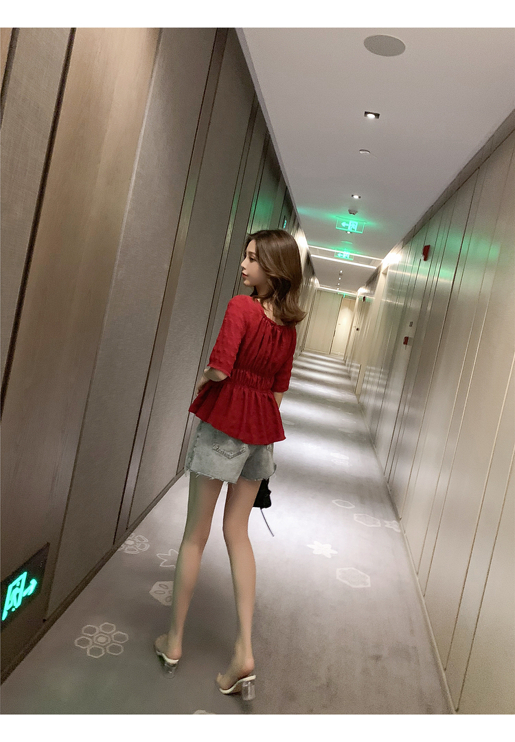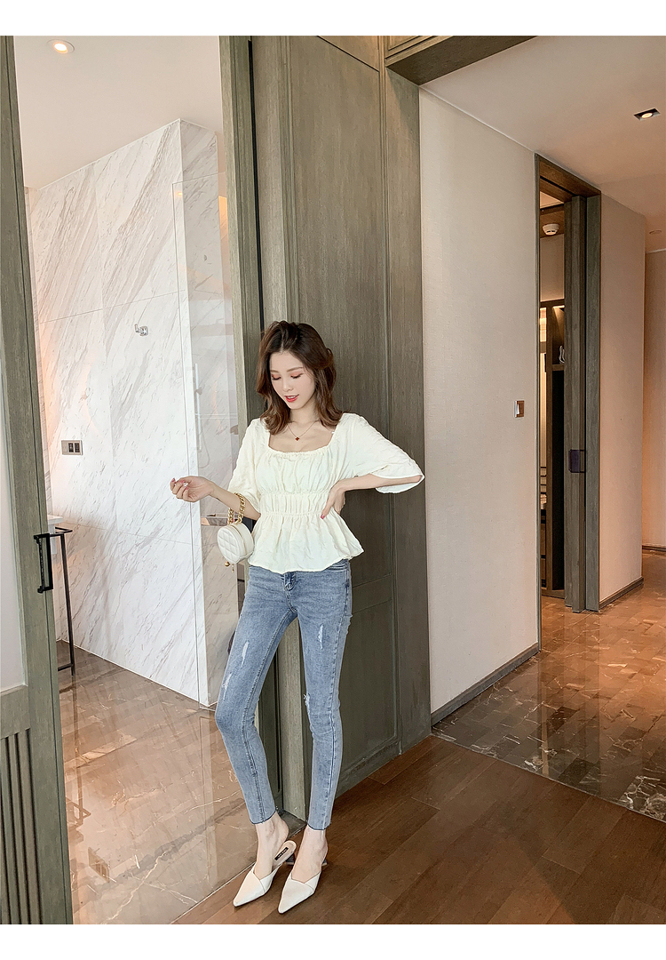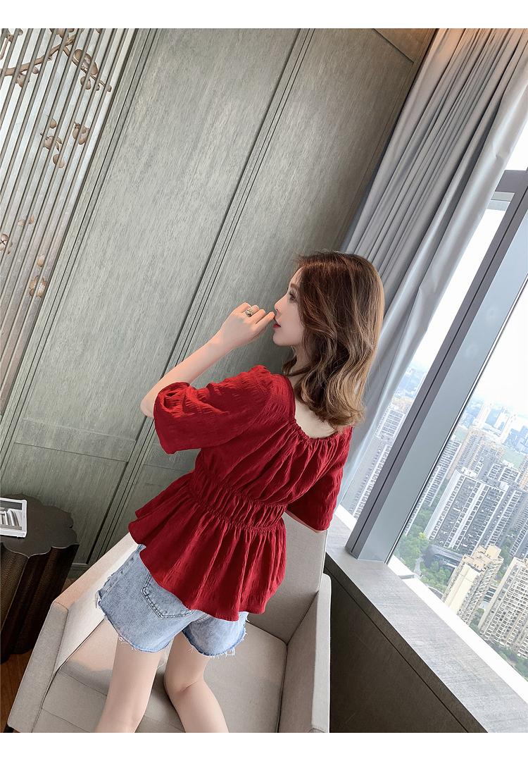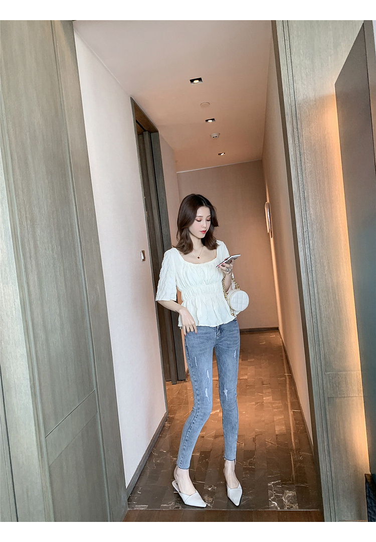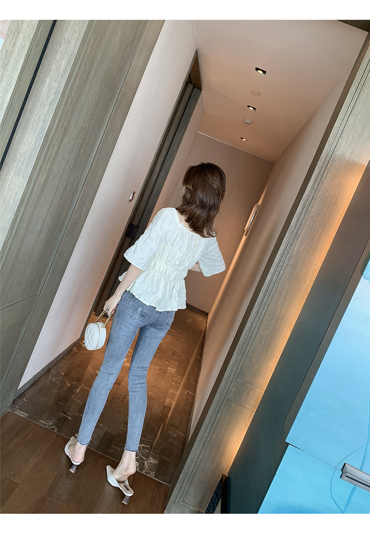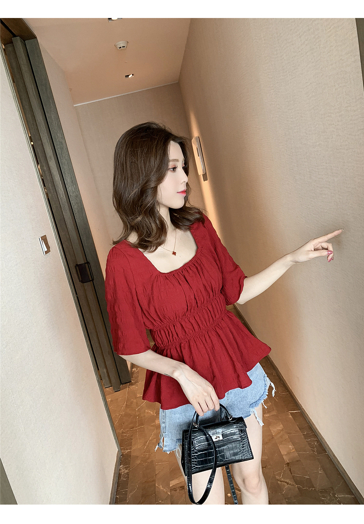 เสื้อแฟชั่นคอเหลี่ยมแขนสั้น สม็อคเอวชายระบาย เนื้อผ้ามีเท็กซเจอปุ่มๆผ้าเบาพริ้วใส่สบาย เสื้อแฟชั่นใส่เที่ยวแบบสวยหวานสไตล์เกาหลี