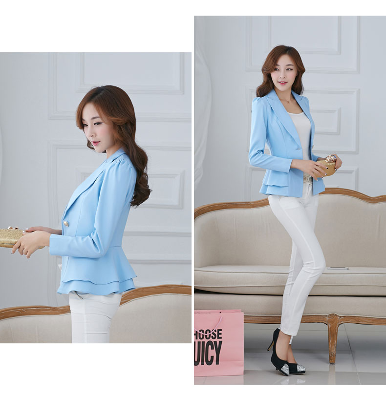 เสื้อสูทผู้หญิงแขนยาวแต่งเอวระบาย เสื้อสูทใส่ทำงานหรือใส่ออกงานสไตล์เรียบหรู