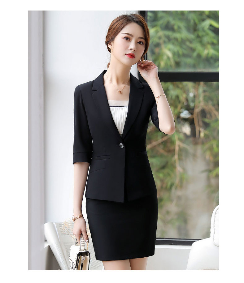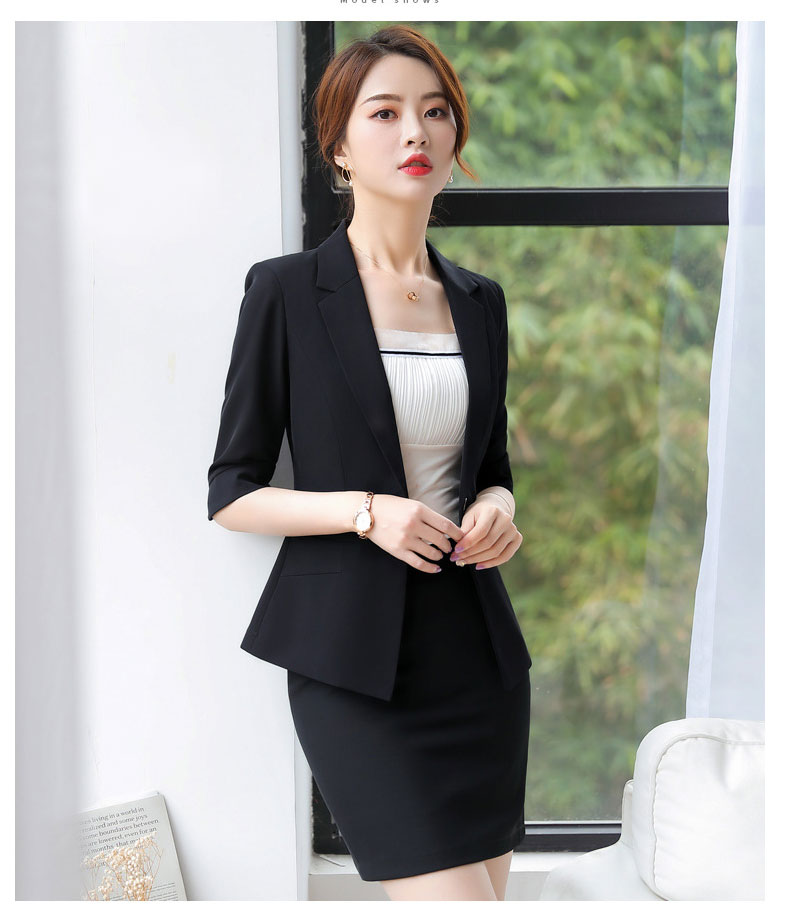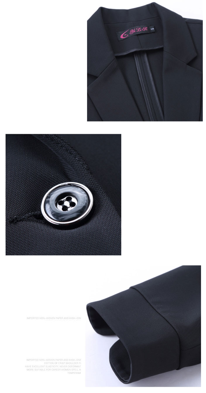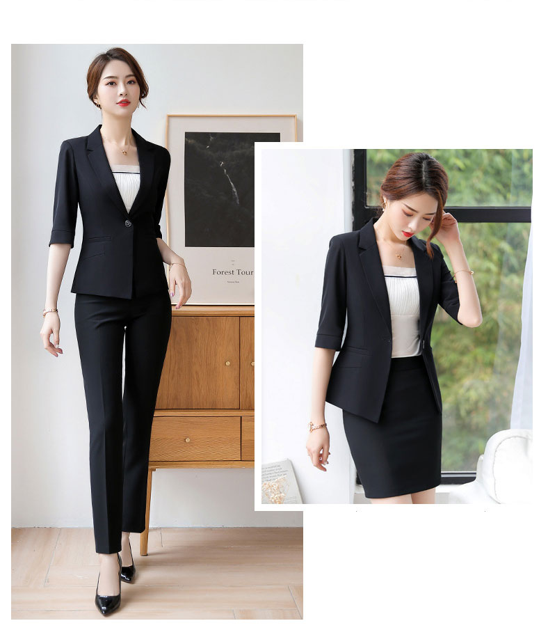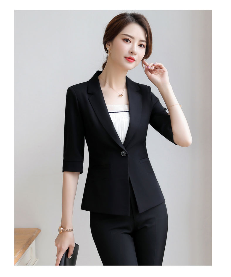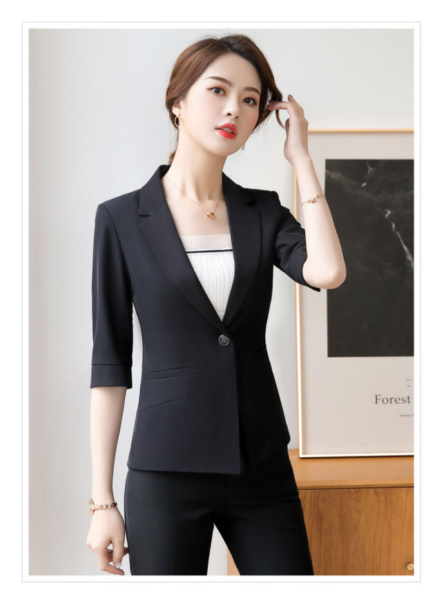 เสื้อสูทแฟชั่นสีดำดีไซน์สวยหรู ปกเล็กแขนสามส่วนกระดุมหน้า1เม็ด ใส่ทำงานหรือคลุมออกงานก็ดูดีจ้า