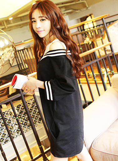 เสื้อยืดกึ่งเดรสโชว์ไหล่ สไตล์สาวเกาหลีแบบสปอร์ตตี้เกิลสุดๆ